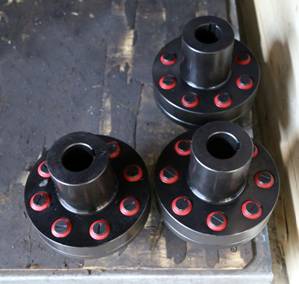 4. 現(xiàn)將半聯(lián)軸器1 套在電機軸上,如果軸孔和電機軸為很小的間隙配合或者過盈配合,需要將該半聯(lián)軸器加溫到150-200°C,再裝在電機軸上。