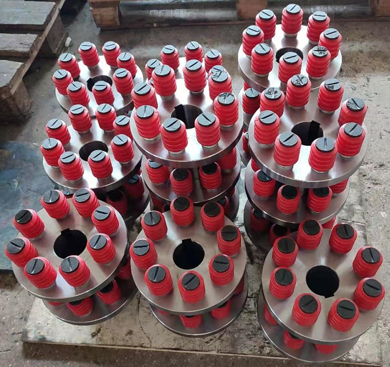 彈性套柱銷聯(lián)軸器結(jié)構(gòu)比較簡單,制造容易,不用潤滑,不需要與金屬硫化粘結(jié),更換彈性套方便,不用移動半聯(lián)軸器,具有一定補(bǔ)償兩軸相對偏移和減振緩沖性能。彈性套柱銷聯(lián)軸器適用于聯(lián)接兩同軸線的傳動軸系。具有一定的補(bǔ)償量和緩沖減震功能。工作溫度-20°C- +70°C,傳遞扭矩125-16000N.M. 彈性套柱銷聯(lián)軸器曾經(jīng)是我國應(yīng)用*廣泛的聯(lián)軸器,早在20世紀(jì)50年代末期即已制訂為機(jī)械部標(biāo)準(zhǔn):JB 108-60彈性圈柱的銷聯(lián)軸器,是我國*個部標(biāo)準(zhǔn)聯(lián)軸器。 彈性套柱銷聯(lián)軸器是依靠柱銷組的鎖緊力而產(chǎn)生于接觸面的摩擦力矩,并壓縮橡膠彈性套來傳遞轉(zhuǎn)矩。適用于安裝底座剛性好、對中精度較高、沖擊載荷不大、對減振要求不高的中小功率軸系傳動。 彈性套工作是受壓縮變形,由于彈性套的厚度較薄,體積小,彈性變形有限,所以,彈性套柱銷聯(lián)軸器雖可補(bǔ)償軸線位移和彈性,但軸線位移許用補(bǔ)償量較少,彈性較弱。