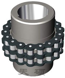 ●特點:鏈條聯(lián)軸器具有結(jié)構(gòu)簡單(四個件組成)、裝拆方便、拆卸時不用移動被聯(lián)接的兩軸、尺寸緊湊、質(zhì)量輕、有一定補償能力、對安裝精度要求不高、工作可靠、壽命較長、成本較低等優(yōu)點。滾子鏈聯(lián)軸器 可用于紡織、農(nóng)機、起重運輸、工程、礦山、輕工、化工等機械的軸系傳動,適用于高溫、潮濕和多塵工況環(huán)境,不適用高速、有劇烈沖擊載荷和傳遞軸向力的場合,鏈條聯(lián)軸器應(yīng)在良好的潤滑并有防護罩的條件下工作。鏈條聯(lián)軸器是利用公用的鏈條,同時與兩個齒數(shù)相同的并列鏈輪嚙合,不同結(jié)構(gòu)型式的鏈條聯(lián)軸器主要區(qū)別是采用不同的鏈條,常見的有雙排滾子鏈聯(lián)軸器、單排滾子鏈聯(lián)軸器、齒形鏈聯(lián)軸器、尼龍鏈聯(lián)軸器等。雙排滾子鏈聯(lián)軸器性能優(yōu)于其他結(jié)構(gòu)型式的聯(lián)軸器,為國內(nèi)外廣泛采用KC系列鏈輪聯(lián)軸器,我國亦已制訂為國家標(biāo)準(zhǔn)GB6069-2002 。