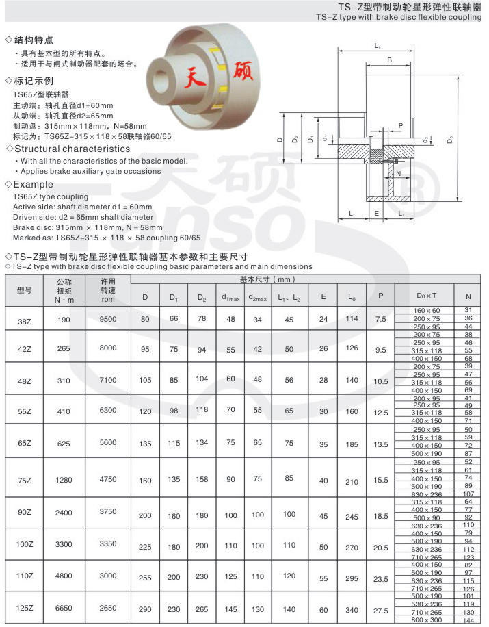 星形彈性聯(lián)軸器是利用星形彈性元件置于兩半聯(lián)軸器凸爪之間以實(shí)現(xiàn)現(xiàn)半聯(lián)軸器的彈性聯(lián)接,結(jié)構(gòu)特點(diǎn)尺寸緊湊慣性小,以工程塑料作彈性元件,適用于聯(lián)接兩同軸線的傳動(dòng)軸系,具有補(bǔ)償兩軸相對(duì)偏移、緩沖、減震、耐磨性能,不用潤(rùn)滑,可以在有粉塵和水份的條件下工作,結(jié)構(gòu)簡(jiǎn)單,維修方便,但更換彈性元件時(shí)需移動(dòng)一端半聯(lián)軸器和主機(jī)軸。適應(yīng)場(chǎng)合普遍,傳遞轉(zhuǎn)矩20-35000.N.M,工作溫度-35-+80攝氏度并與德國(guó)ROTEX聯(lián)軸器互換。聚氨脂彈性體由凸形爪塊限制,可避免由于沖擊產(chǎn)生的內(nèi)部變形及離心力產(chǎn)生的外部變形;凸爪大的凹面,使?jié)u開(kāi)線齒上的表面壓力很小,齒上即使承受過(guò)載,齒仍不會(huì)磨損或變形。具有補(bǔ)償兩軸相對(duì)偏移、減振、緩沖、徑向尺寸小、承載能力較高、維護(hù)方便等特點(diǎn),但更換彈性元件時(shí)兩半聯(lián)軸器需沿軸向移動(dòng)。適用于聯(lián)接兩同軸線、起動(dòng)頻繁、正反轉(zhuǎn)變化、中低速、中小功率傳動(dòng)軸系、要求工作可靠性高的工作部位,不適用于重載及軸向尺寸受限制、更換彈性元件后兩軸線對(duì)中困難的部位。