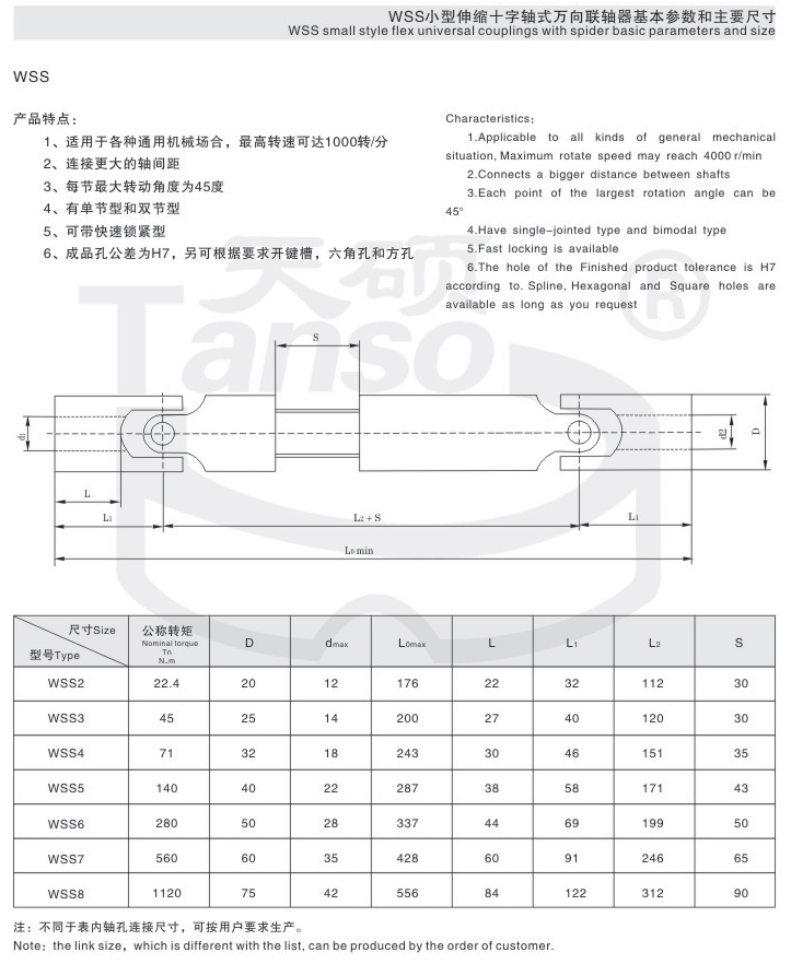 WSS萬向節(jié)基本尺寸和參數(shù)
